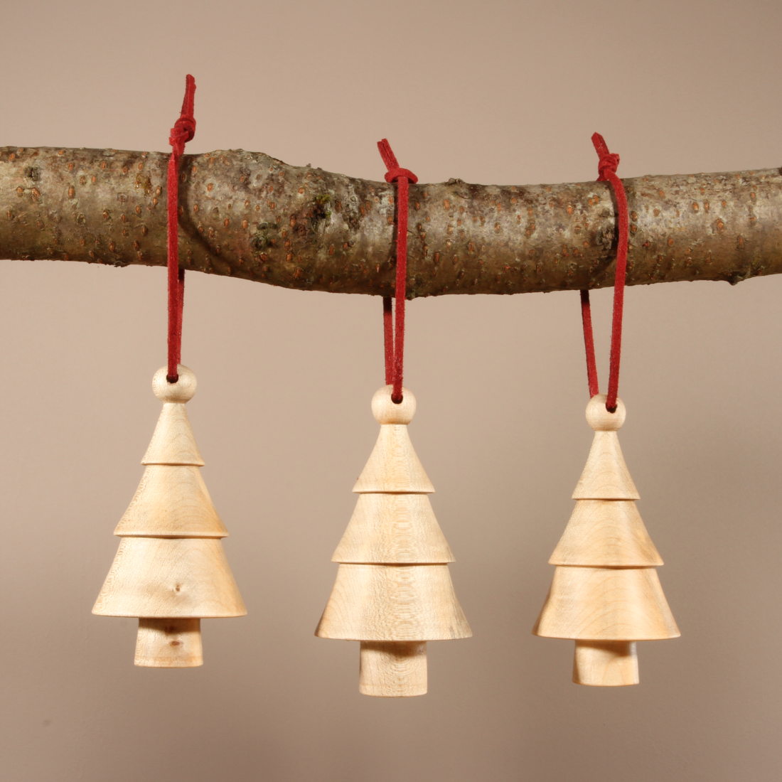 Designed and hand made in our Yorkshire studio, each of our wooden Christmas Tree Decoration sets is unique – there will never be another one exactly like it. We use locally-sourced in Yorkshire hardwoods and each piece is hand made on lathes, and hand finished with natural oils and waxes. To be re-used every year and treasured forever.