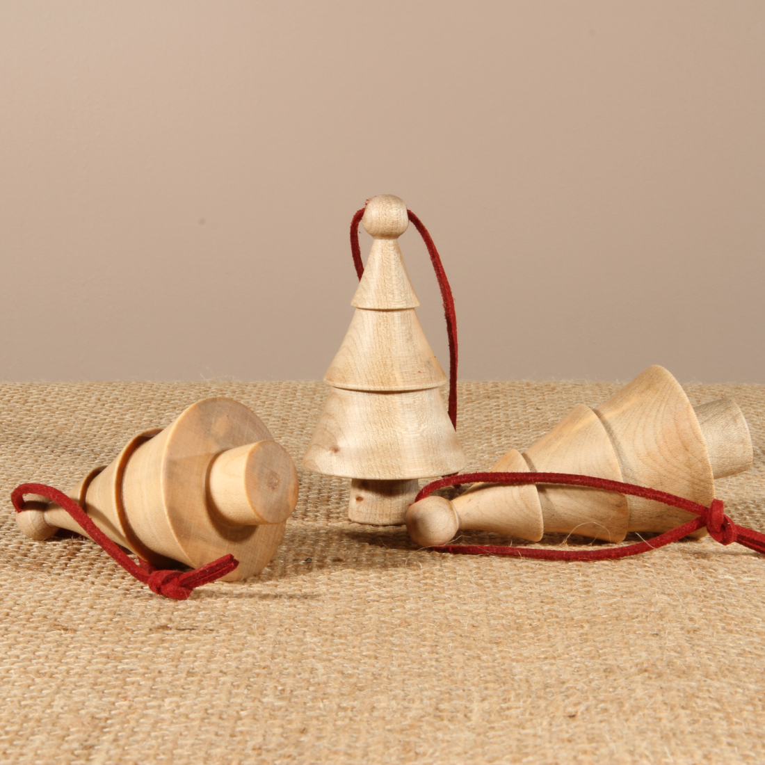 Each set include three tree decorations packaged in a small muslin bag.